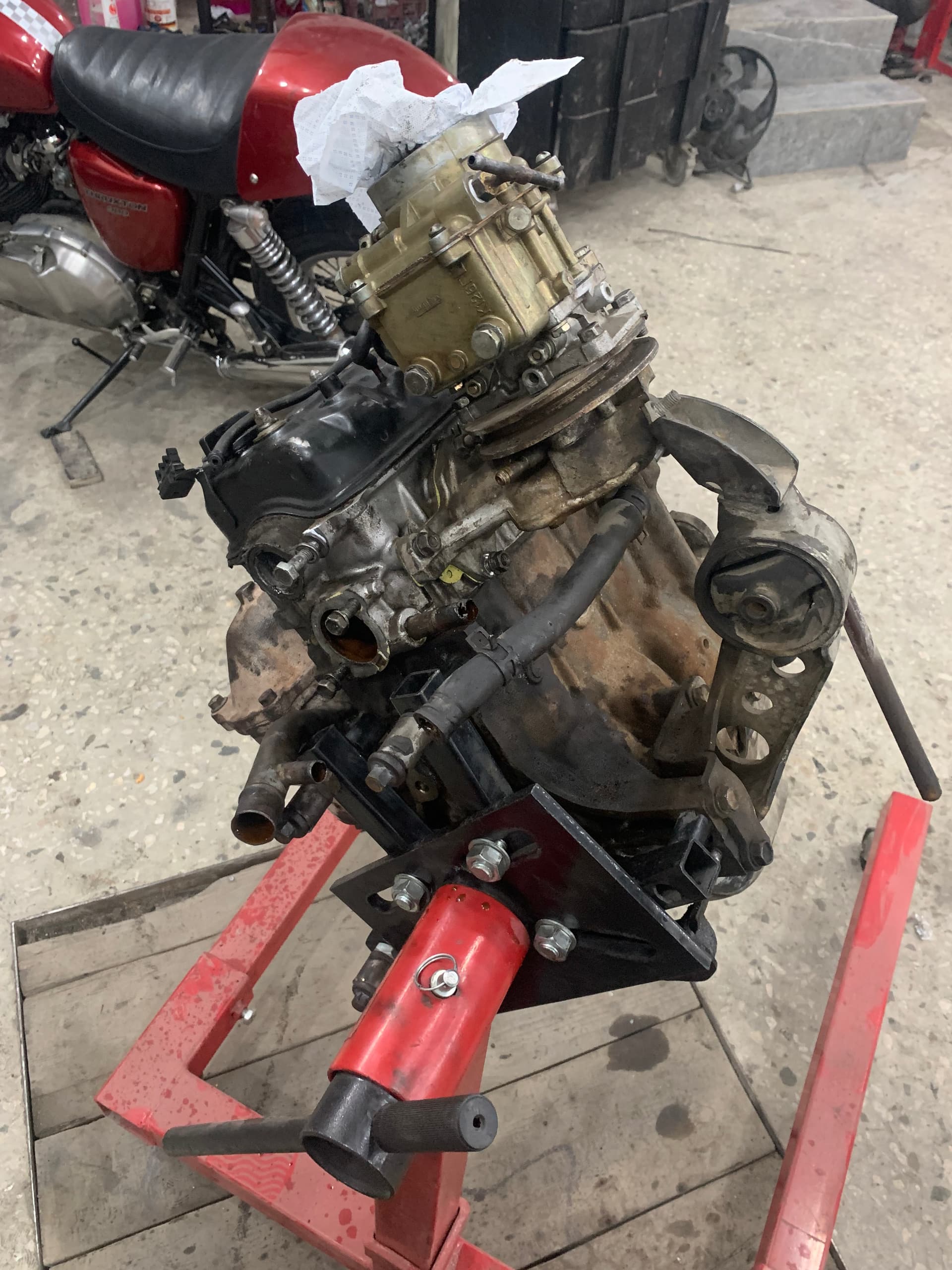 Engine is ED10 block with ED20 head and Volga Gaz-24 126 Carburetor (you cant find any oem parts for cars like this in small Armenia, so we run anything we can find here)