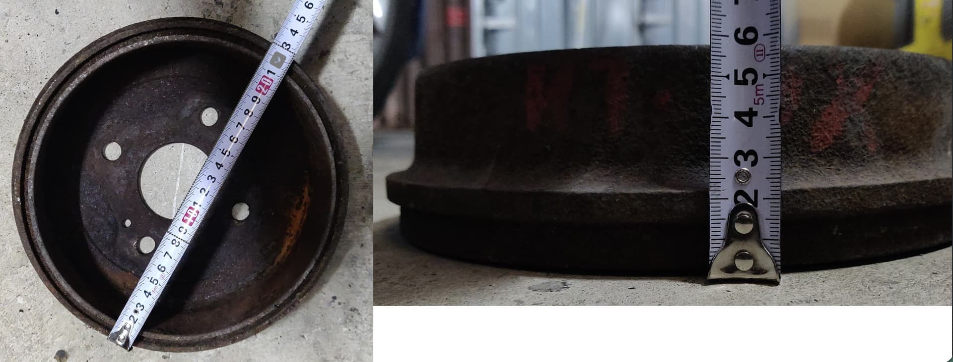 Looking at the measurements of the Hyundai drum, the overall height of the drum is 72mm and the outer diameter is 216mm. The PCD for the Hyundai is 114.3mm.On the Charade, the overall height of the drum is a shy more than 55mm while the total diameter is around 230mm. PCD for the Charade is 110mm