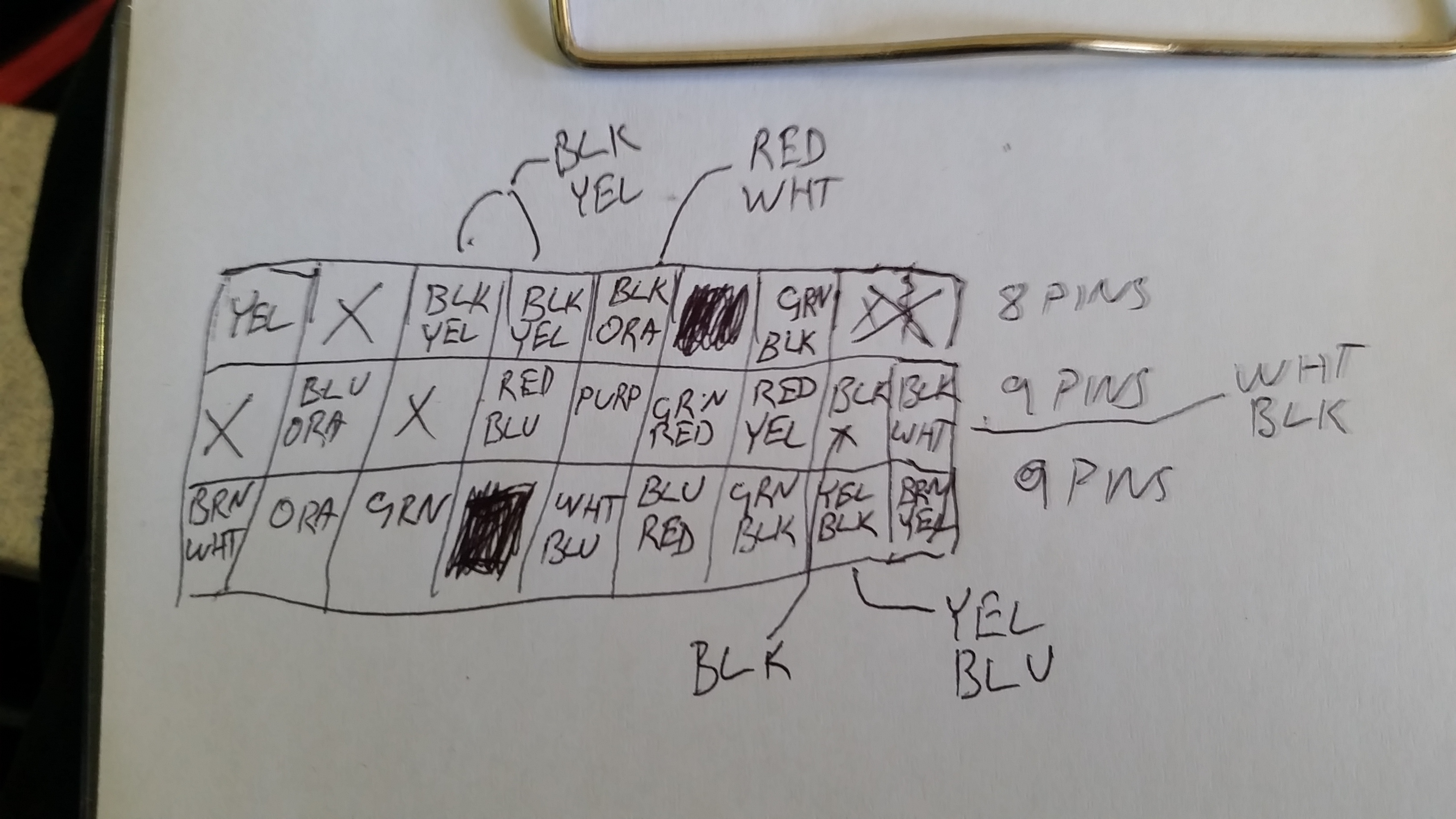 but also took down what wires went where from the smaller of the two ecu plugs, only 6 hooked up. Colours written on my crudely drawn pic are main wire colour on top and second colour is stripe and looking from the side the wires go into ,if it helps anyone, i don’t know what they do yet as haven’t sussed the L200 manual