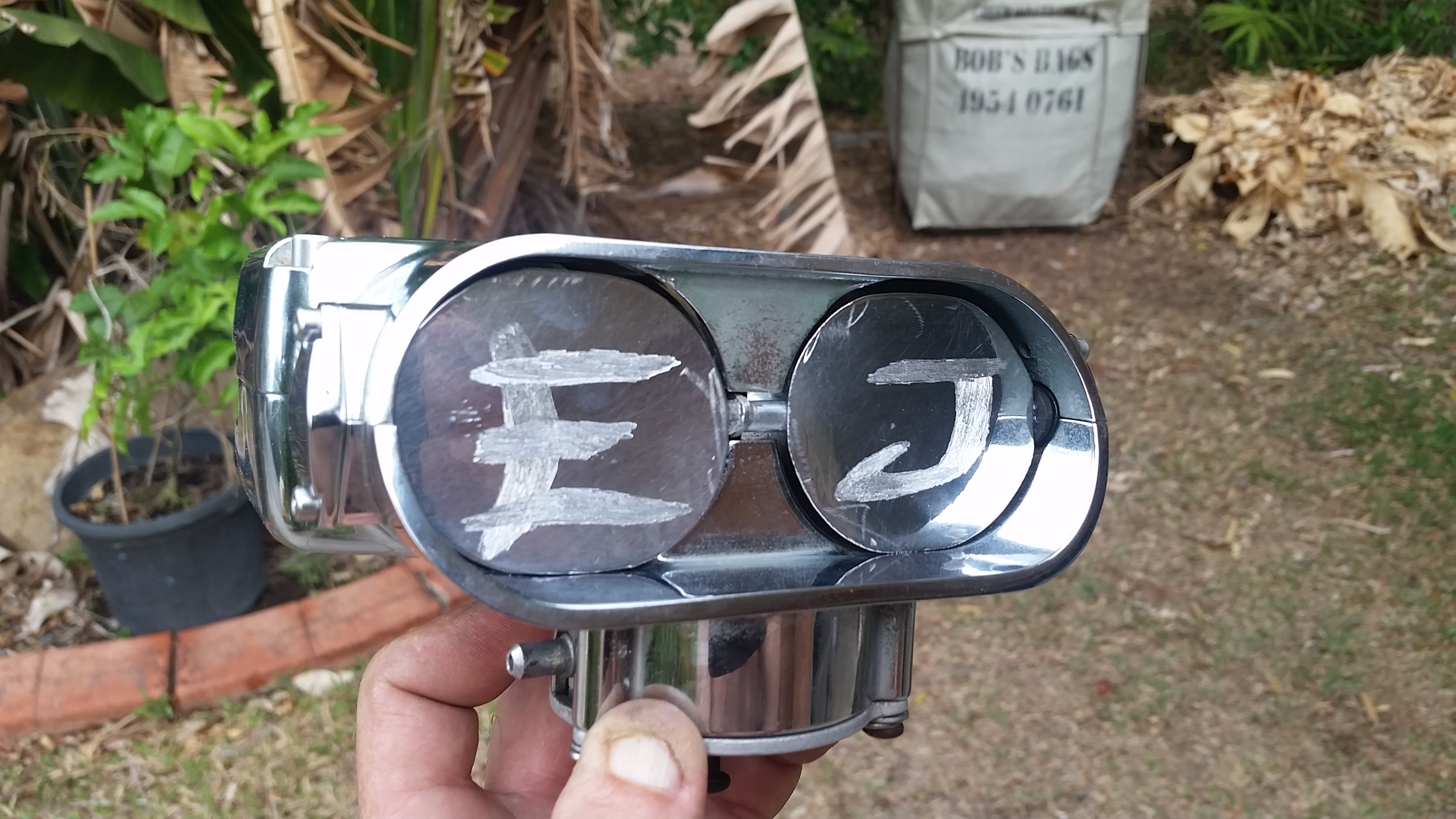 the plan was to adapt it to suit the intake, fashioned a shaft out of 6mm galvanised steel rod, soldered a little ring onto it then cut some 0.5mm plate for the butterflies, polished and engraved them