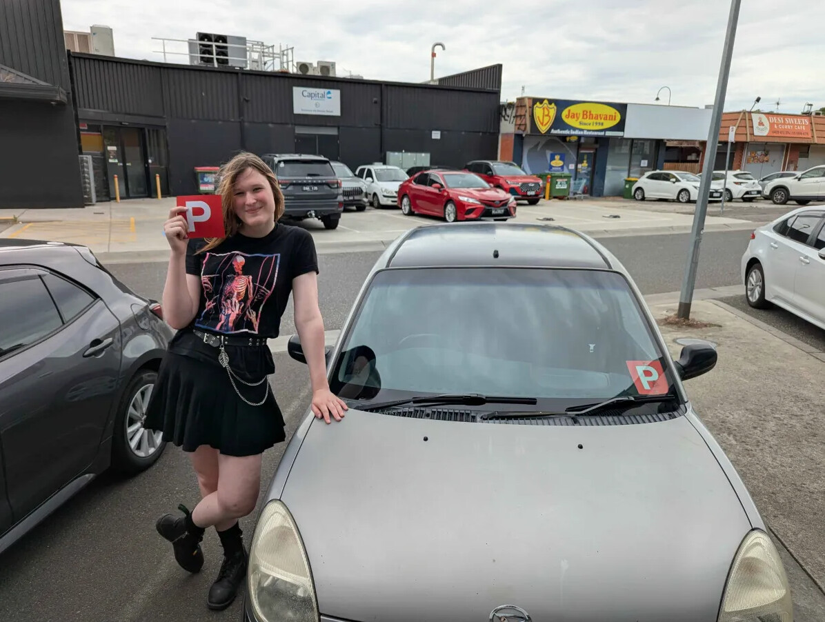 I replaced the Brake rotors so the annoying judder is gone and i gave him his nose (Front Badge) back, but more importantly i PASSED MY P TEST I CAN FINALLY DRIVE HER ALONE! … also i swear i own more than one shirt… lol