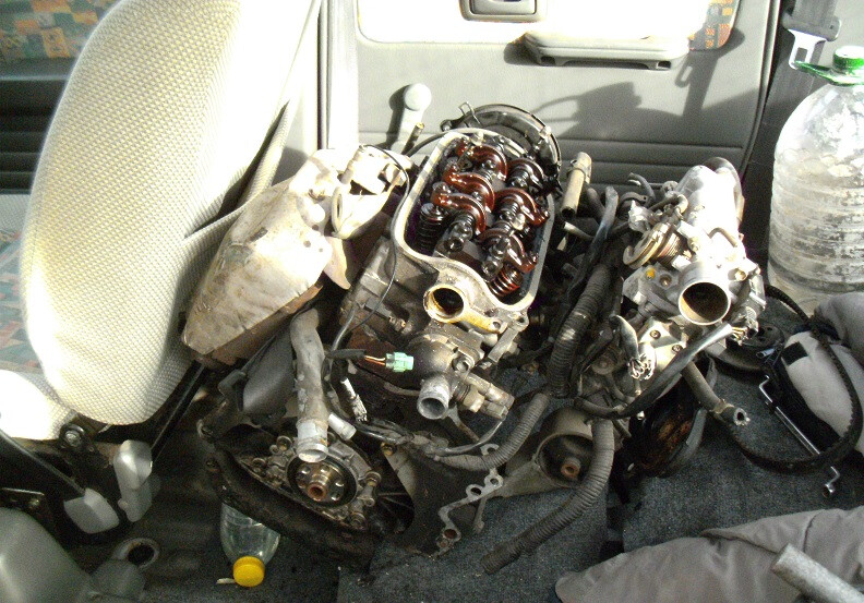 Of course, I’m not sure if that wasn’t a replacement engine or not, given that the vehicle’s odometer has no way of knowing. The piston to bore wear, however, looks like it has noticable side wear, indicating prolong periods of high-speed operation, since that’s when piston speed is at its highest. Whether the wear is excessive or not would be better off determining through measure and not simply visually